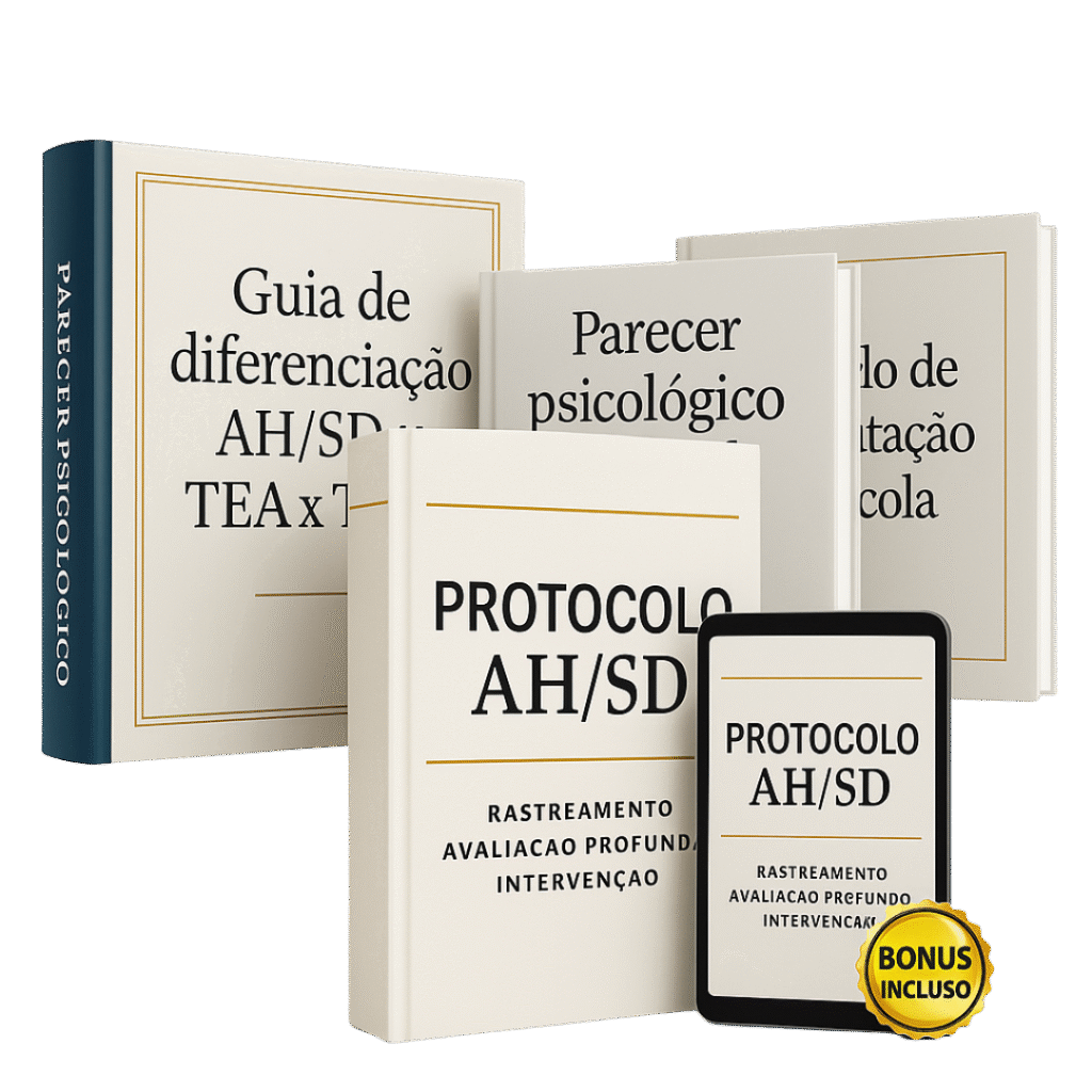 Centenas de psicólogos, psicopedagogos, terapeutas e educadores já estão utilizando o Protocolo AH/SD para conduzir avaliações seguras, estruturadas e completas — sem precisar criar instrumentos do zero ou perder horas buscando modelos adequados.